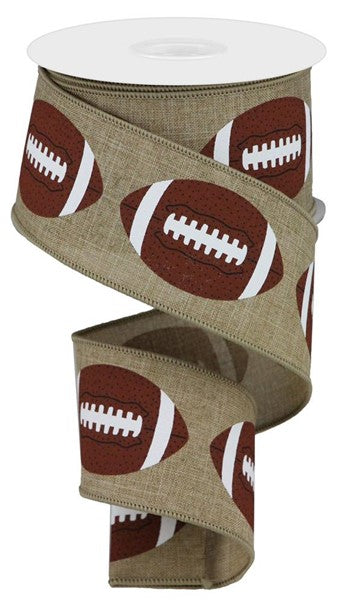 Football Wired Ribbon - 10 Yards (Light Beige, 2.5 Inches)