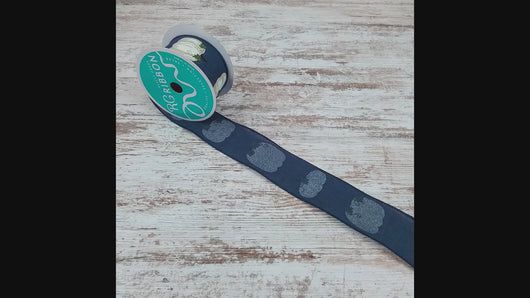 Pumpkins with Leaves Canvas Wired Ribbon : Navy Blue, Cream Ivory, Beige, Brown, Moss Green - 2.5 Inches x 10 Yards (30 Feet)