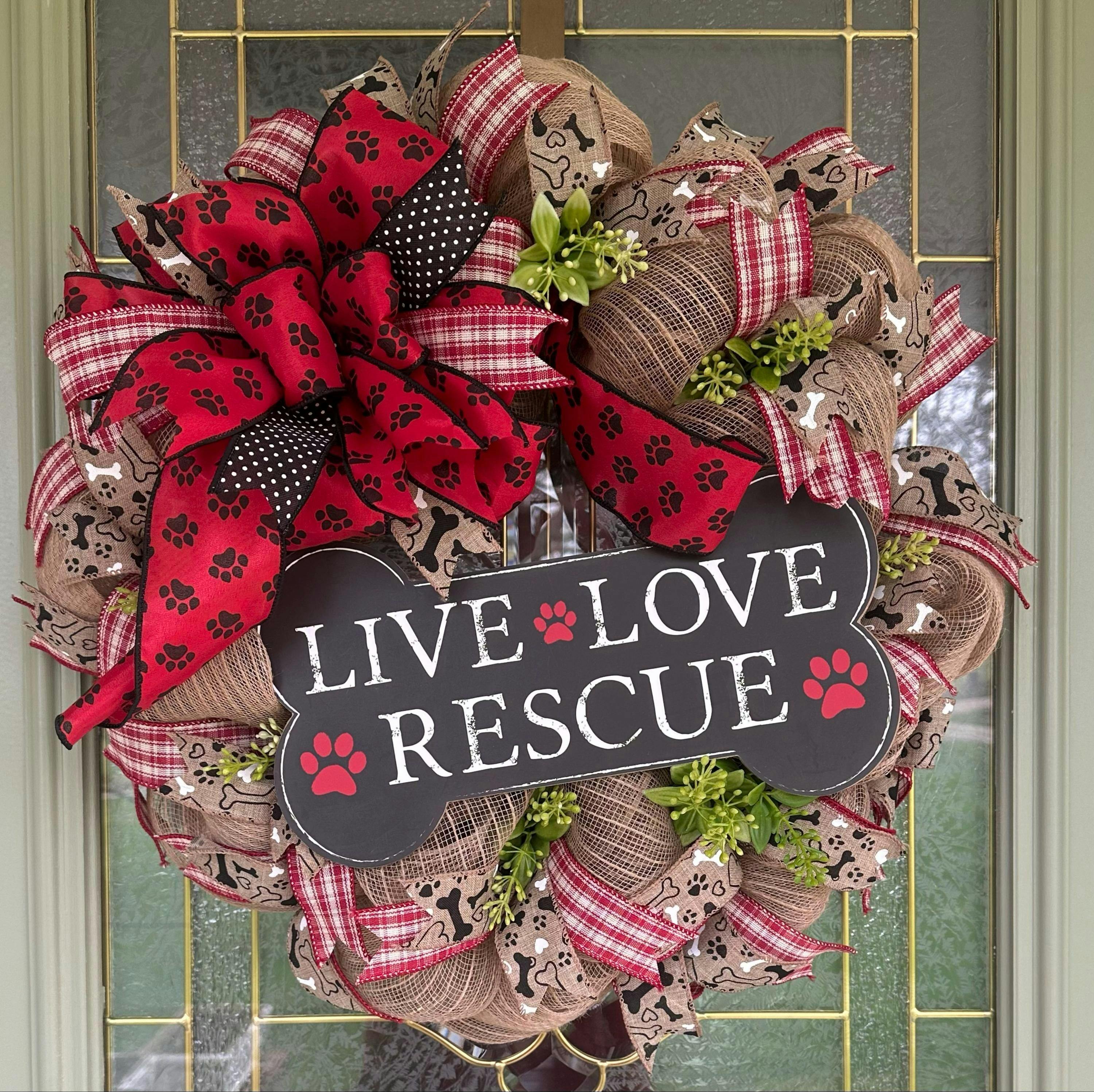 Paw Print Dog Wired Ribbon : Red Satin with Black - 2.5 Inches x 10 Yards (30 Feet)