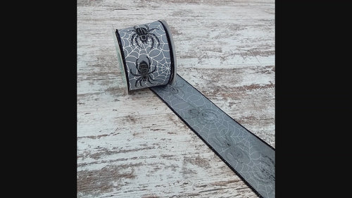 • Spider Web Spider on Canvas Wired Ribbon - 10 Yards (Grey Gray, White, Black, 2.5 Inches)