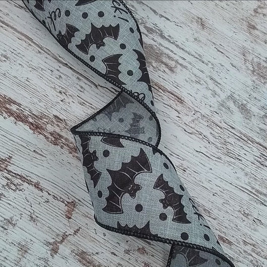 Halloween Bats on Canvas Wired Ribbon : Light Grey Gray - 2.5 Inches x 10 Yards (30 Feet)