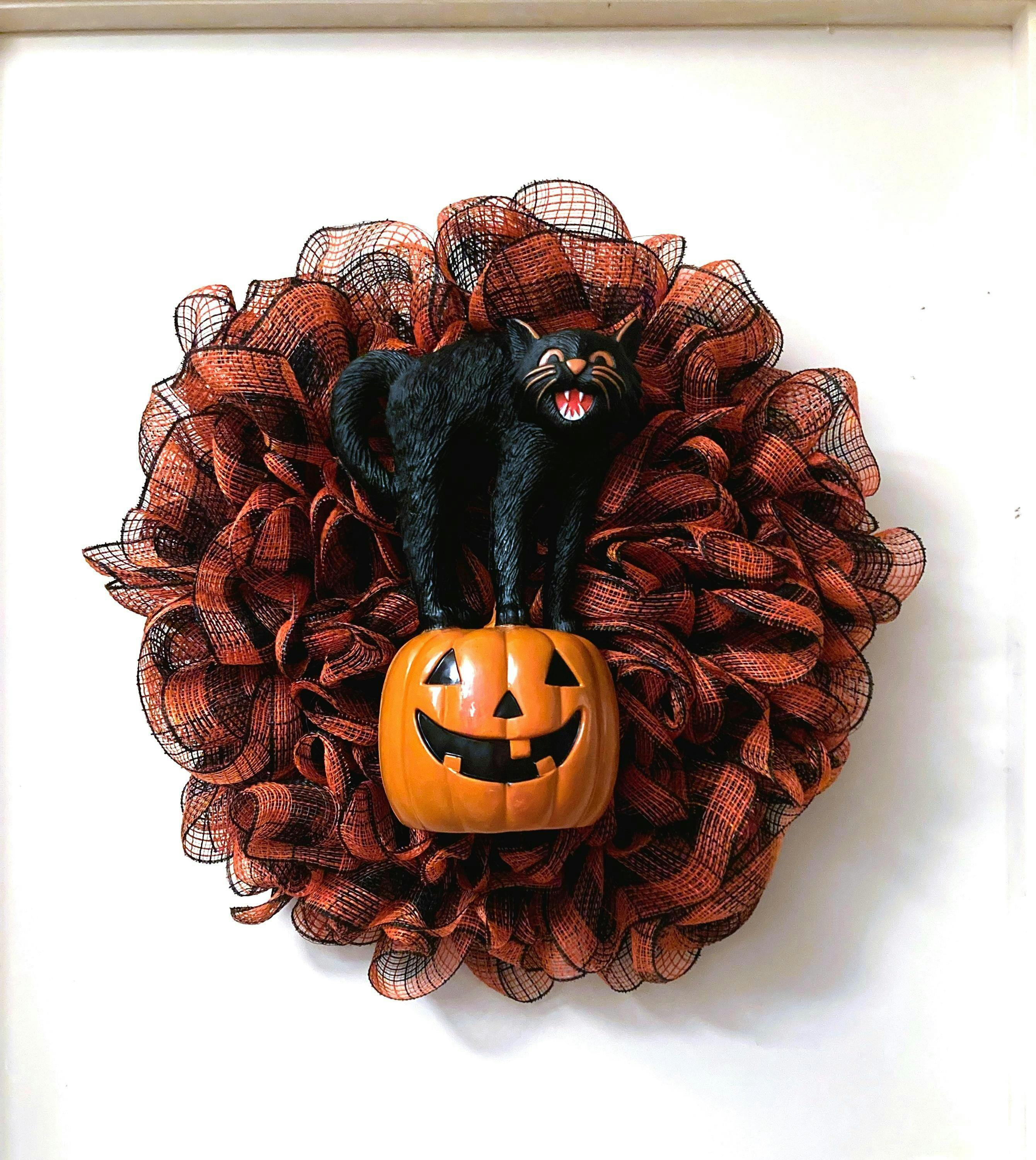 Small Check Faux Jute Deco Mesh Ribbon : Orange, Black - 10.25 Inches x 10 Yards (30 Feet)