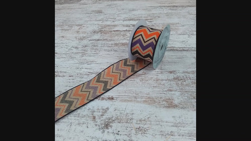 Purple, Orange, Black Chevron Wire Edged Ribbon - Cross Royal Burlap - 2.5" x 10 Yards