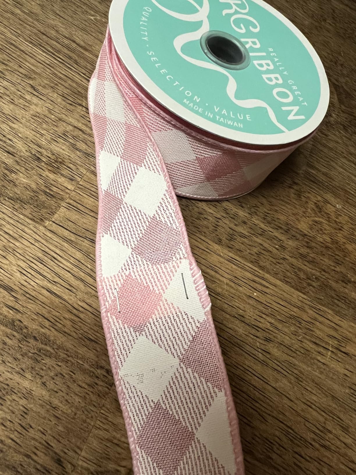 Diagonal Plaid Check Wired Ribbon : Purple, White - 2.5 inches x 10 Yards (30 Feet)