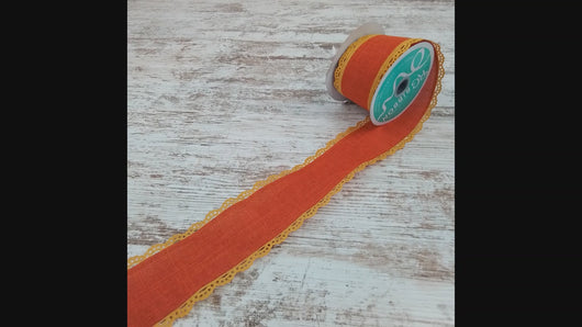 Fall Lace Scalloped Edge Royal Burlap Wired Ribbon Rust Red Brown, Mustard Yellow) - 2.5 Inches x 10 Yards (30 Feet)