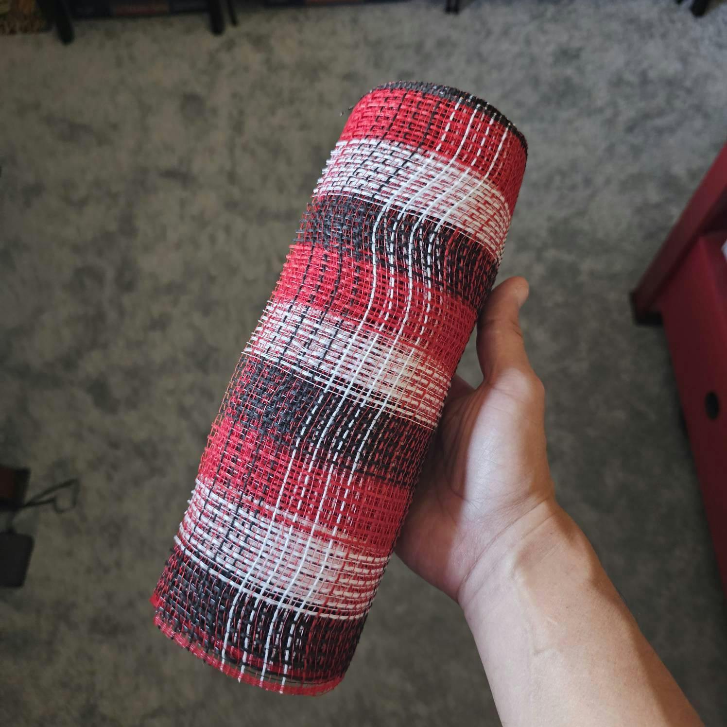 Faux Jute & Deco Mesh Ribbon Small Check : Red, White, Black - 10.25 Inches x 10 Yards (30 Feet)